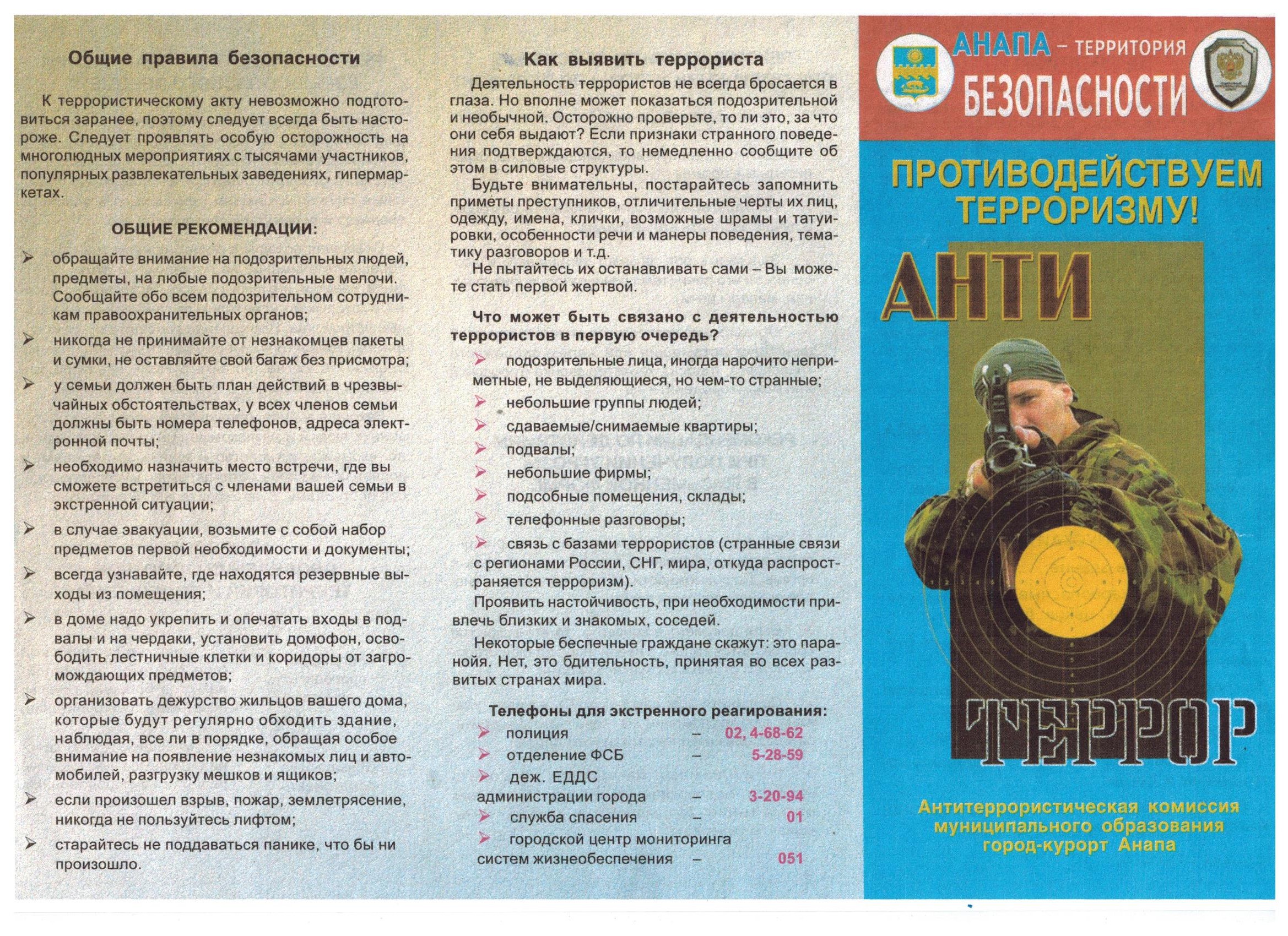 Информационные материалы, рекомендованные антитеррористической комиссией в муниципальном образовании город-курорт Анапа
